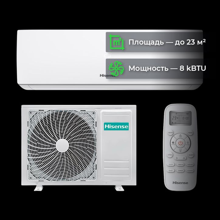 Интеллектуальная функция SMART автоматически определяет оптимальный режим работы кондиционера и настройки скорости вентилятора с помощью специального алгоритма свободной логики. Режим повышенной мощности TURBO позволяет кондиционерам серии Hisense EASY Classic A быстро охладить или согреть помещение всего за несколько минут.