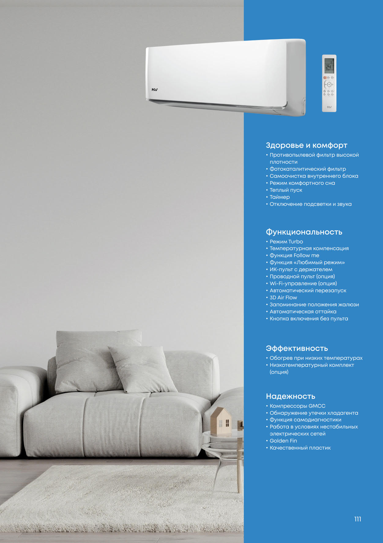 - Возможна комплектация низкотемпературным комплектом, который обеспечивает работу кондиционера в режиме охлаждения при температуре наружного воздуха до -40°С в режиме охлаждения.