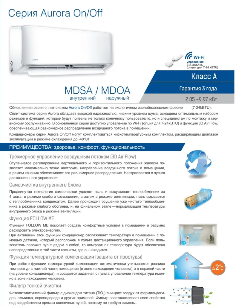 Возможность управления кондиционером по Wi-Fi (опция):✓